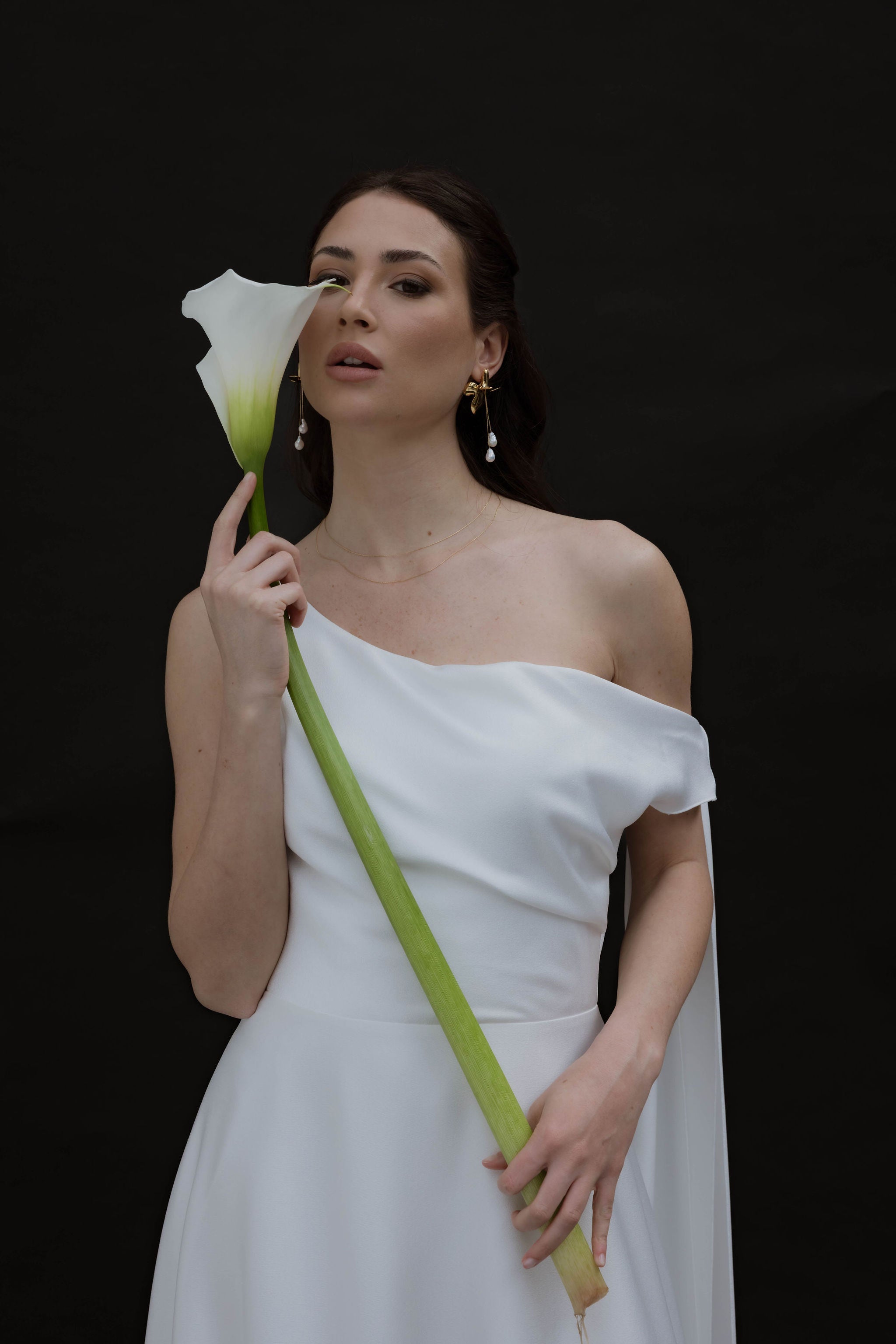 We wanted to capture the beauty of a flower in motion , light and alive, to create the Amore earrings : an iconic piece, full of grace and singularity , imagined for daring, romantic and modern brides.