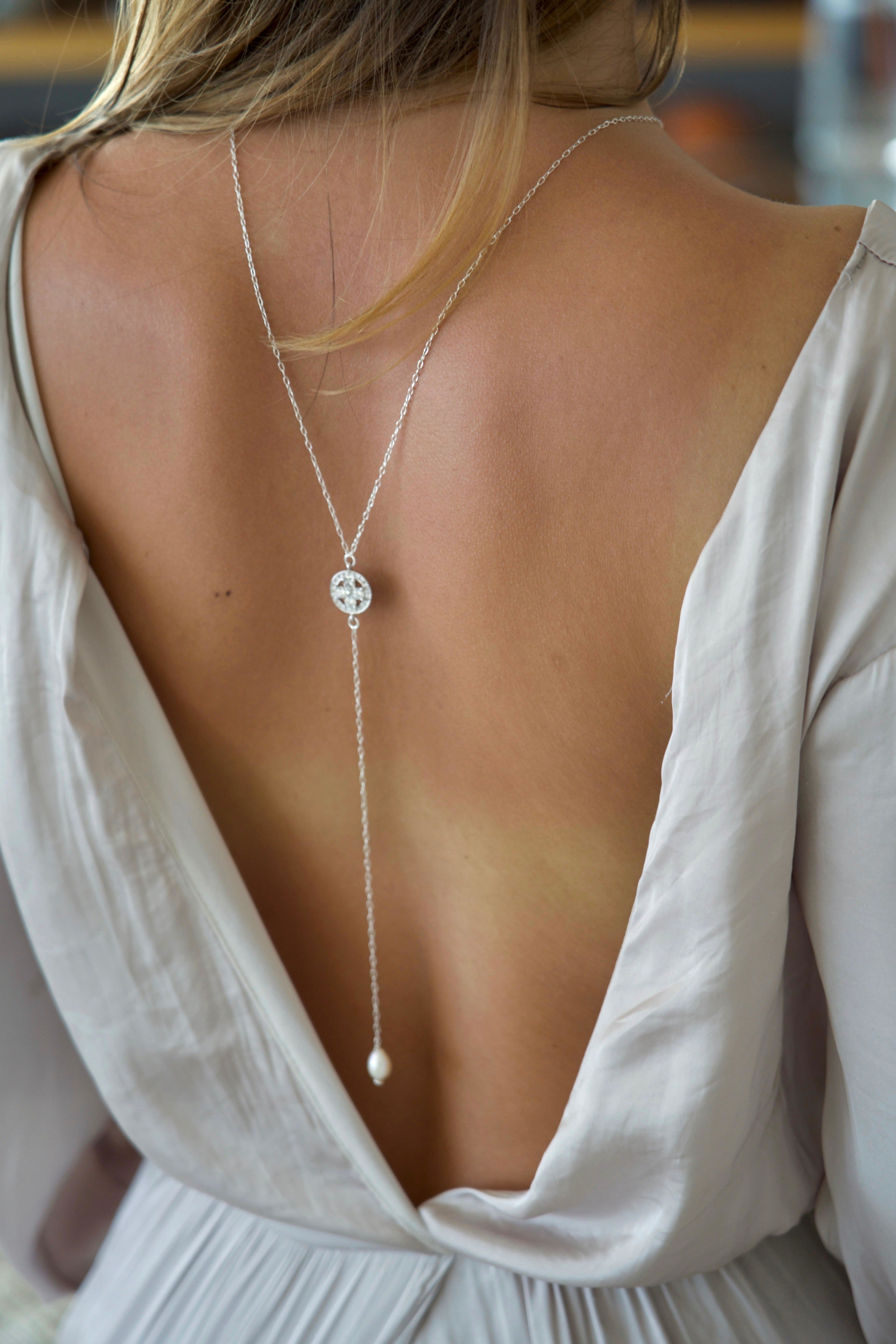 Ce magnifique bijou de mariage pour le corps a été conçu pour compléter un décolleté de dos.