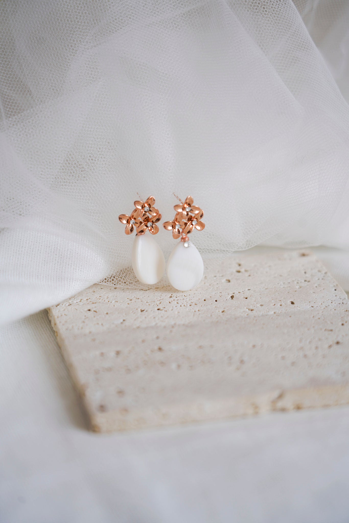 Pura - Boucles d'oreilles florales avec une goutte en nacre