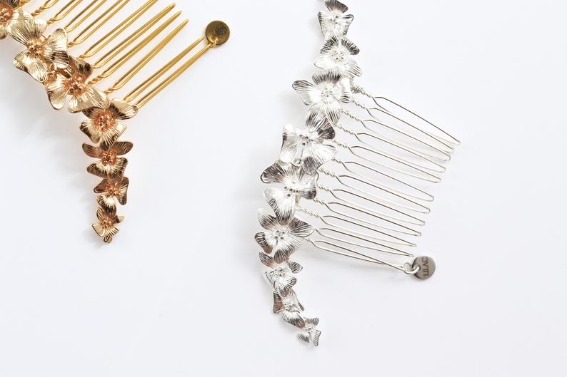 Our Amoureuse wedding comb, is an elegant floral comb adorned with small, fine and very delicate flowers.