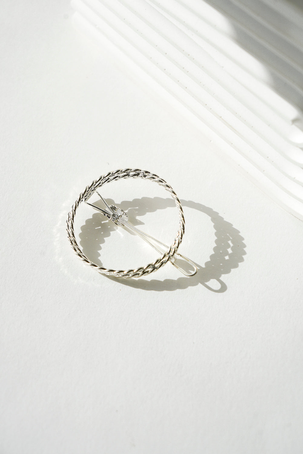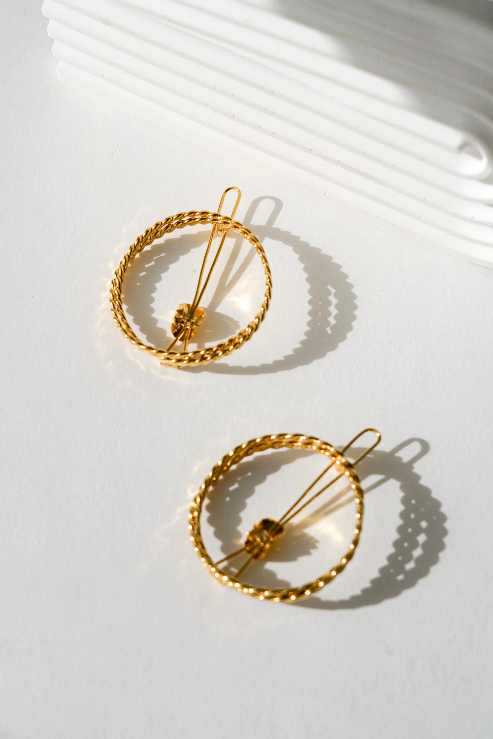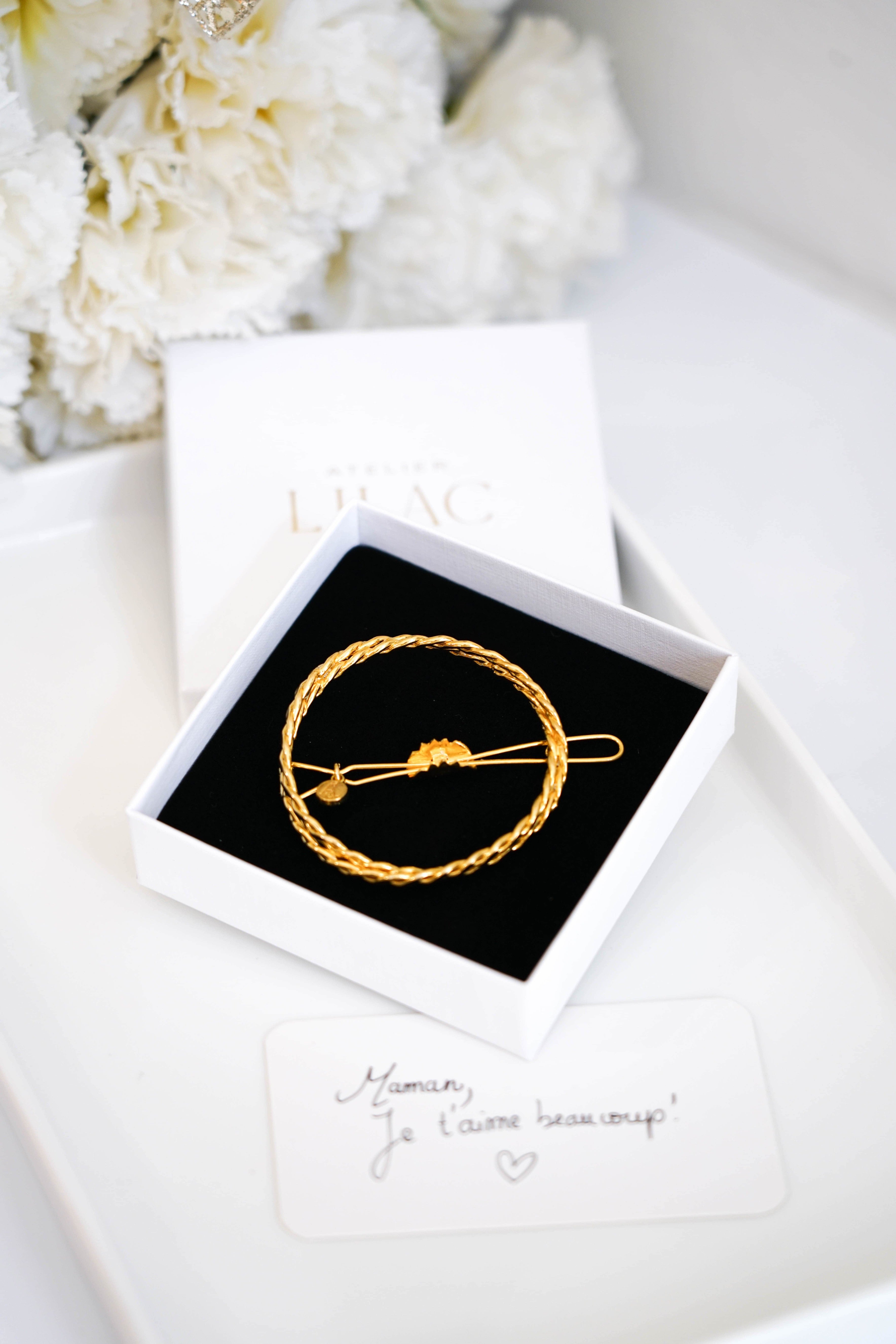 Our Tressée barrette is a modern and minimalist hairstyle jewel. This creation was made in our workshop by the hands of our goldsmiths. Its circular structure is made from coiled bronze wires. The final piece is bathed in 24k gold for the golden version or in 925 silver for the silver version. This head jewel will be the perfect complement to your outfits, for the most elegant as well as the most casual. Graceful on both short and long hair!