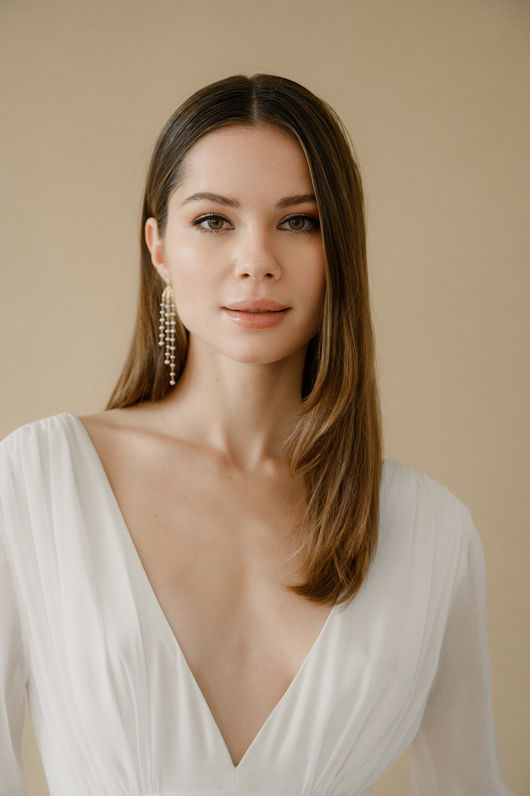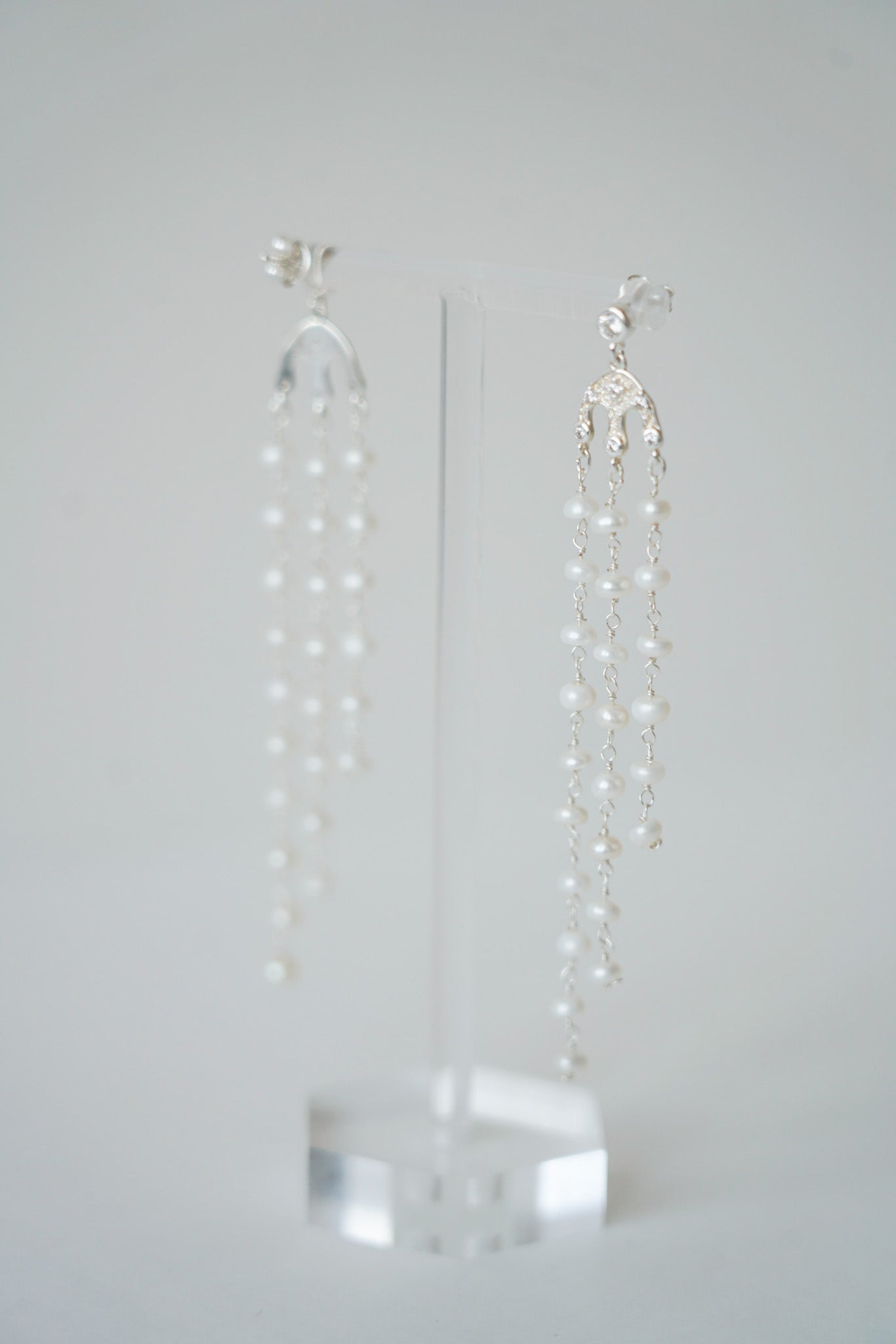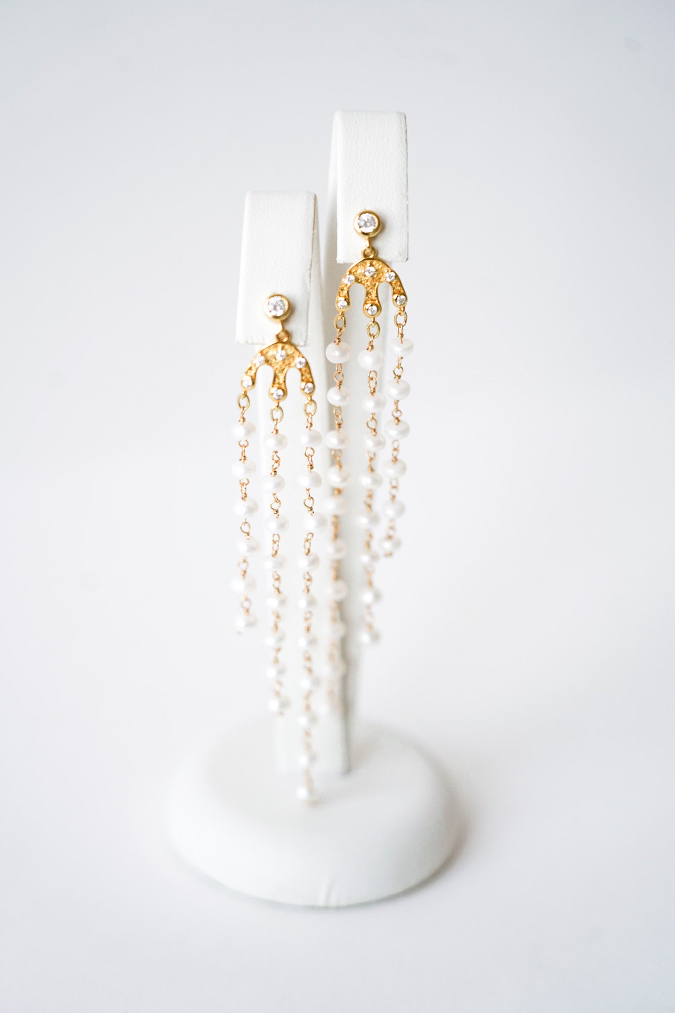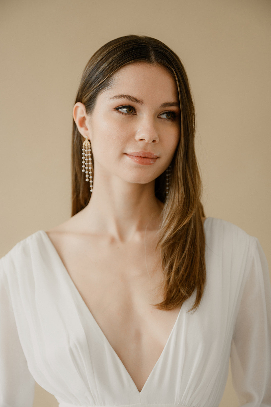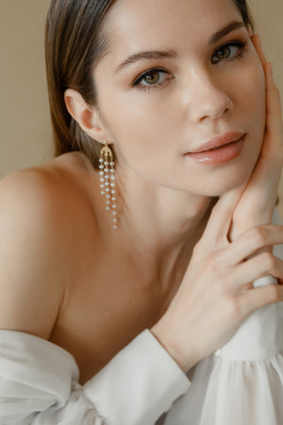 These breathtaking earrings are the perfect piece of jewelry to complete your bridal outfit, whether bohemian, romantic, minimalist or classic. Made entirely by hand in our workshop in the south of France, they incorporate the elegance of natural pearls.