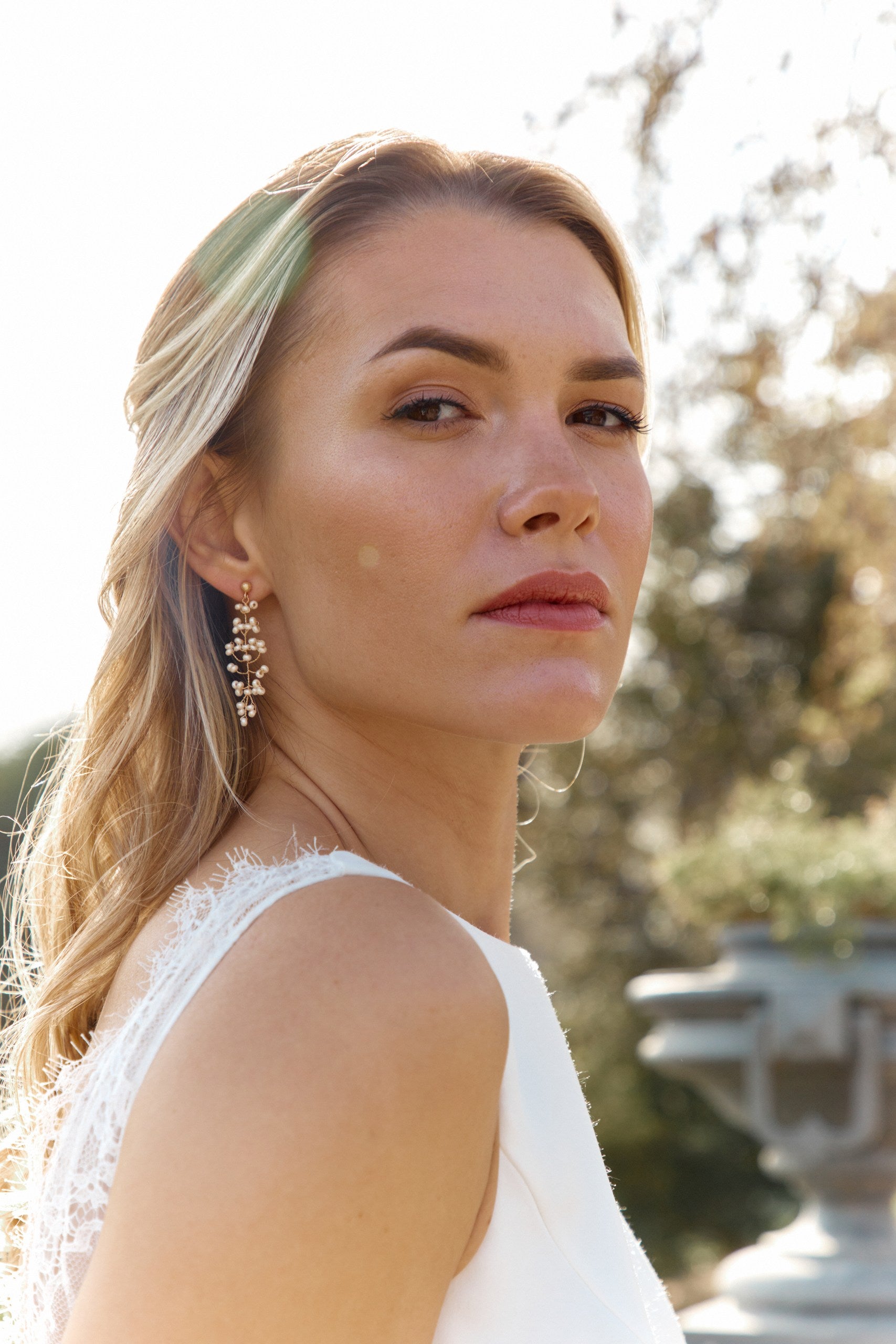 These wedding drop earrings are available in three finishes: gold, silver and rose gold.