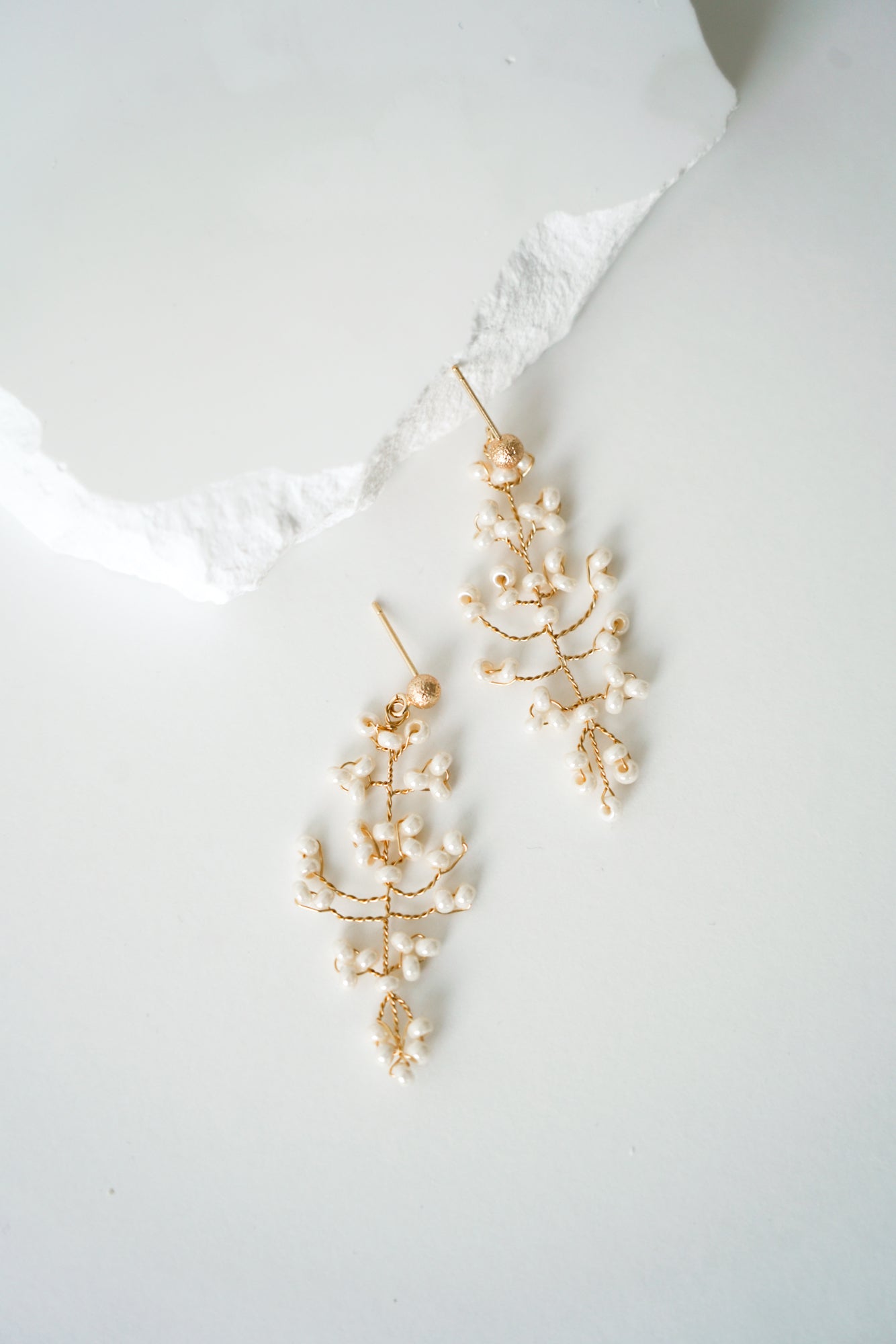 Delicate and feminine, this pair of bridal earrings was designed to enhance her outfit with refinement. Handmade in our workshop in France, these wedding jewelry pieces are crafted with twisted seed bead threads. The twists are shaped to create a captivating and symmetrical structure.