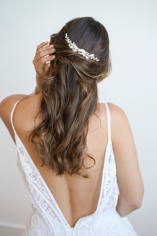 This hair accessory can be worn to accompany a chignon style hairstyle or on a vintage and romantic half-up.