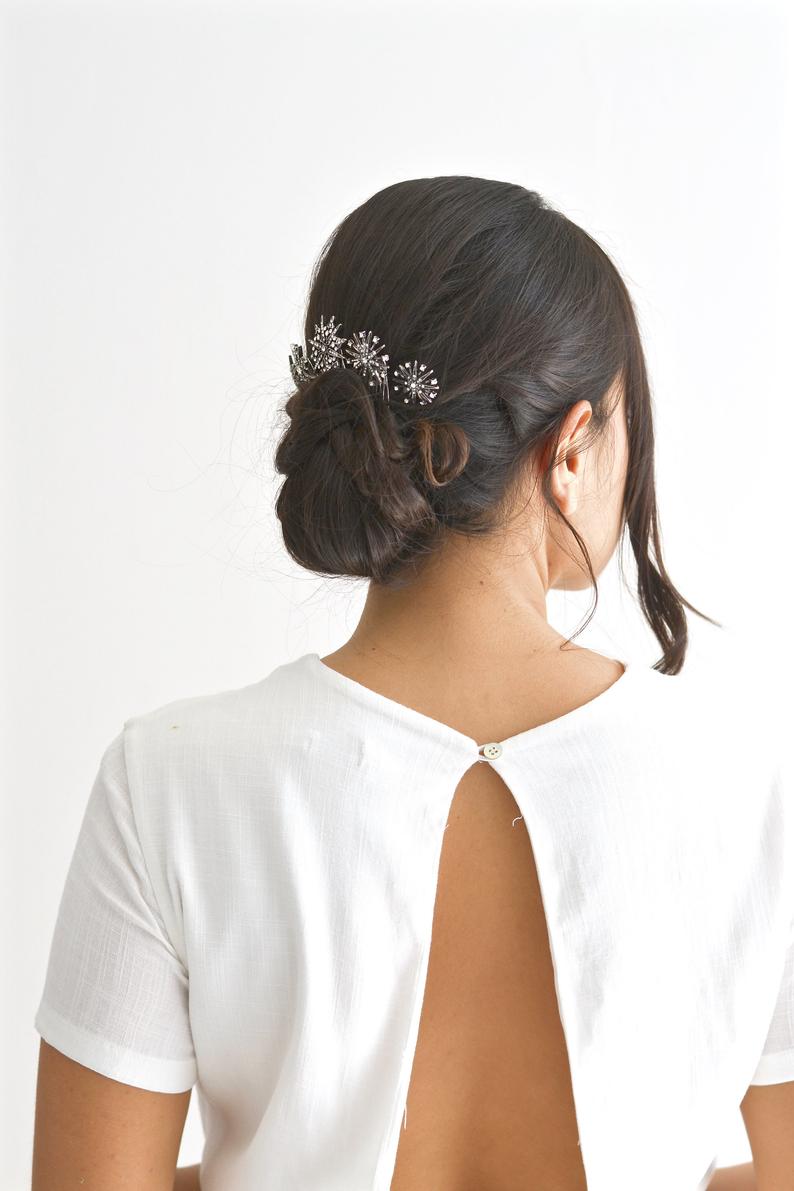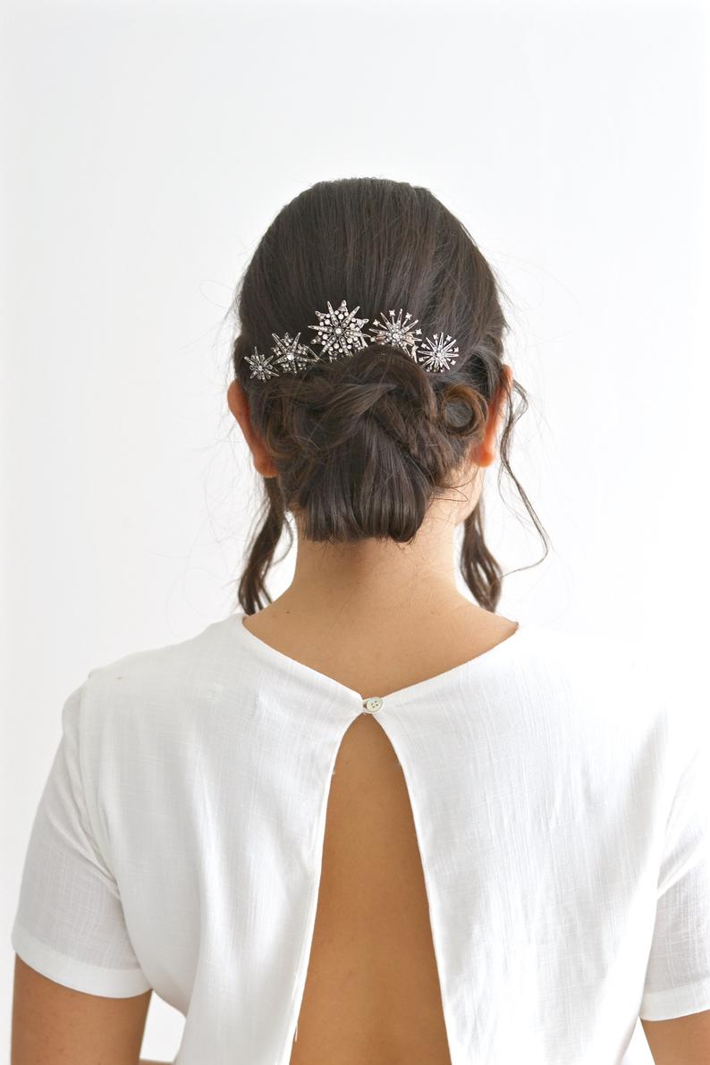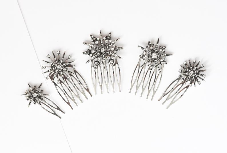 This set of 5 combs were designed to adorn a bohemian, gothic, fairy, or vintage bridal hairstyle. They will be perfect for a wedding with the theme of stars, constellations, and the universe.