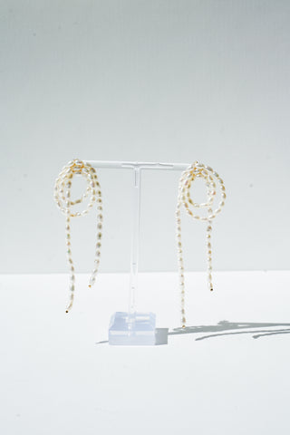These oval earrings are meticulously crafted with natural pearl threads, creating a delicate and modern knot. Handmade in our workshop in France, each pair is designed to offer a refined and feminine look.