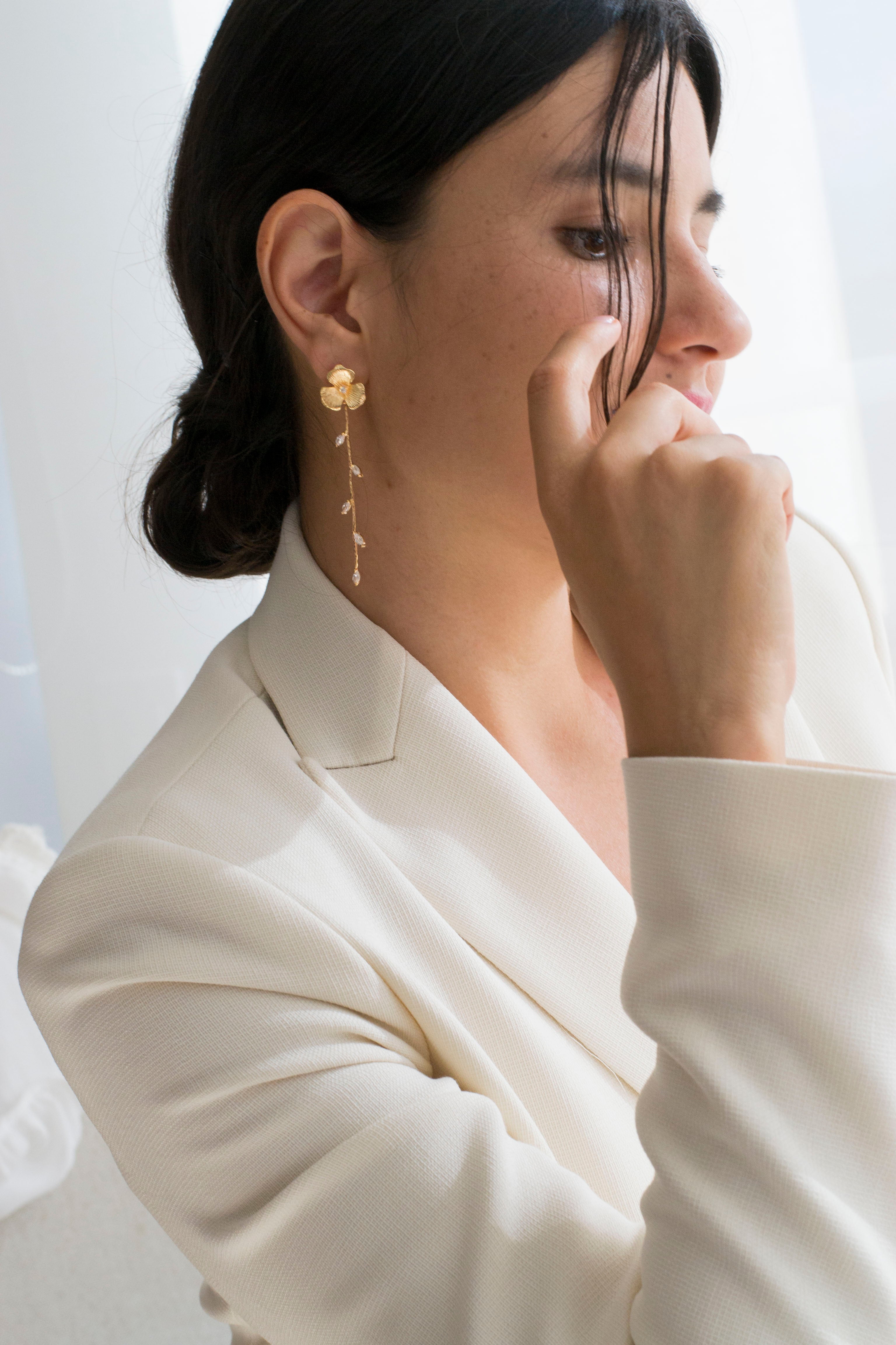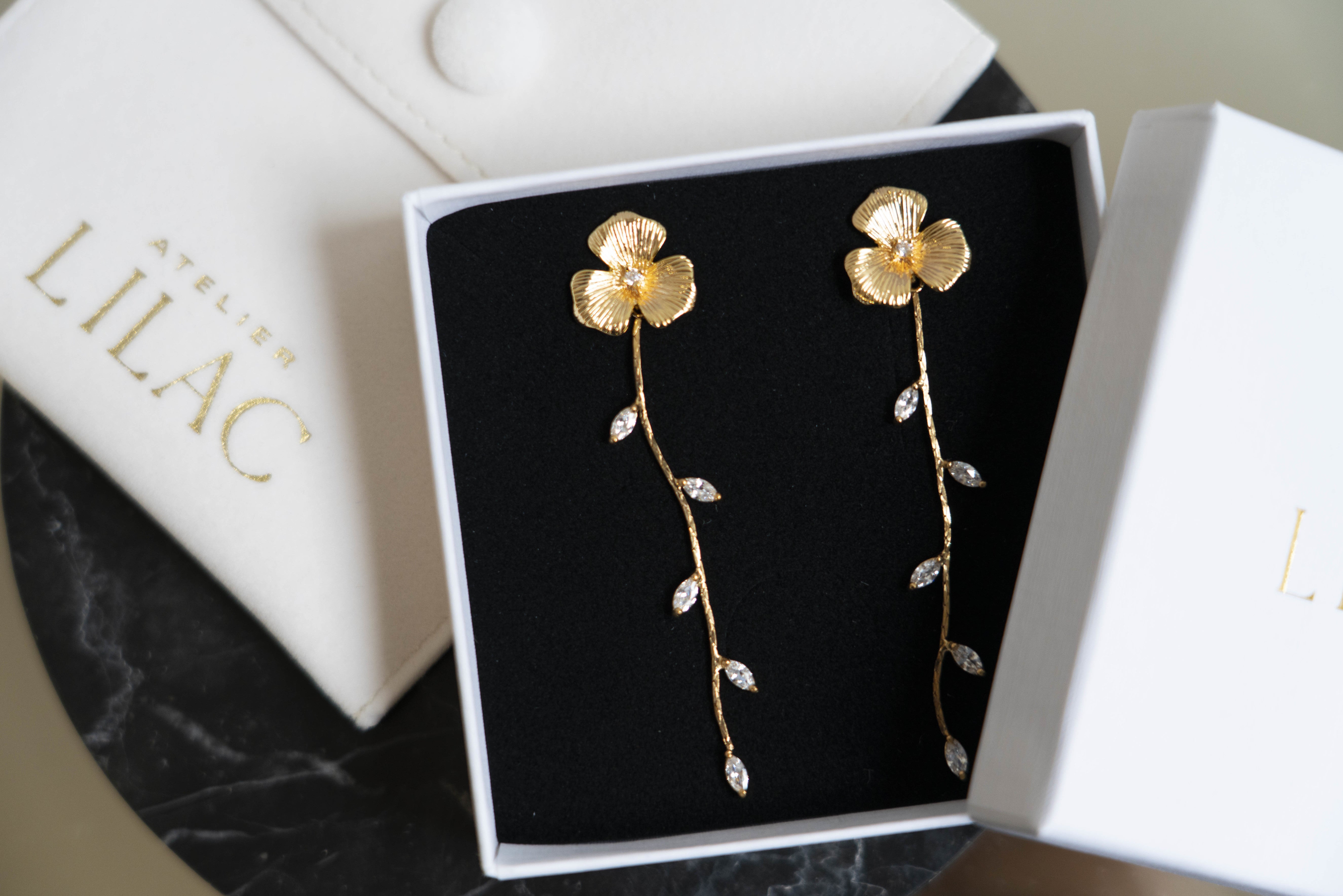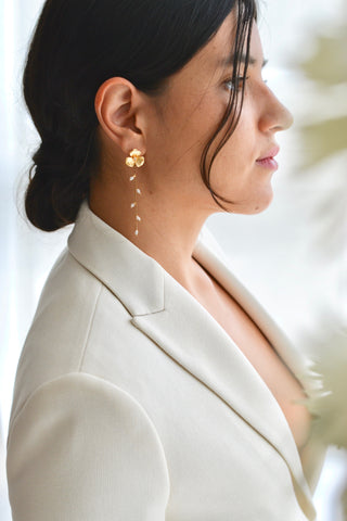 The Suave earrings combine delicacy and elegance with their floral design, perfect for adding a refined touch to your bridal outfit.