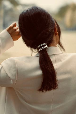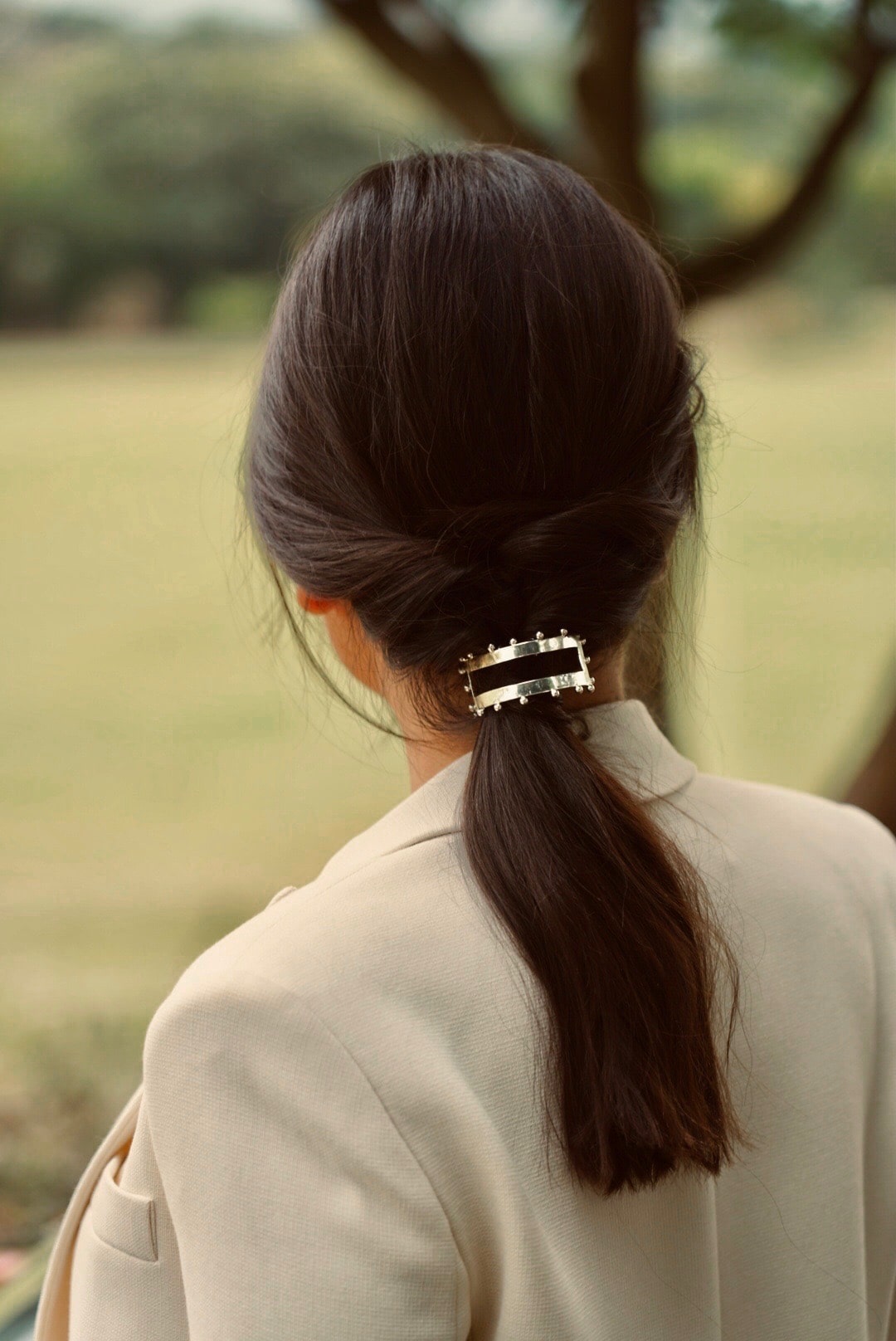 Victoire est un élastique pour cheveux au style minimaliste et moderne. Ce joli accessoire vous permettra de coiffer vos cheveux de façon simple et rapide en vous donnant une touche sophistiquée et élégante.