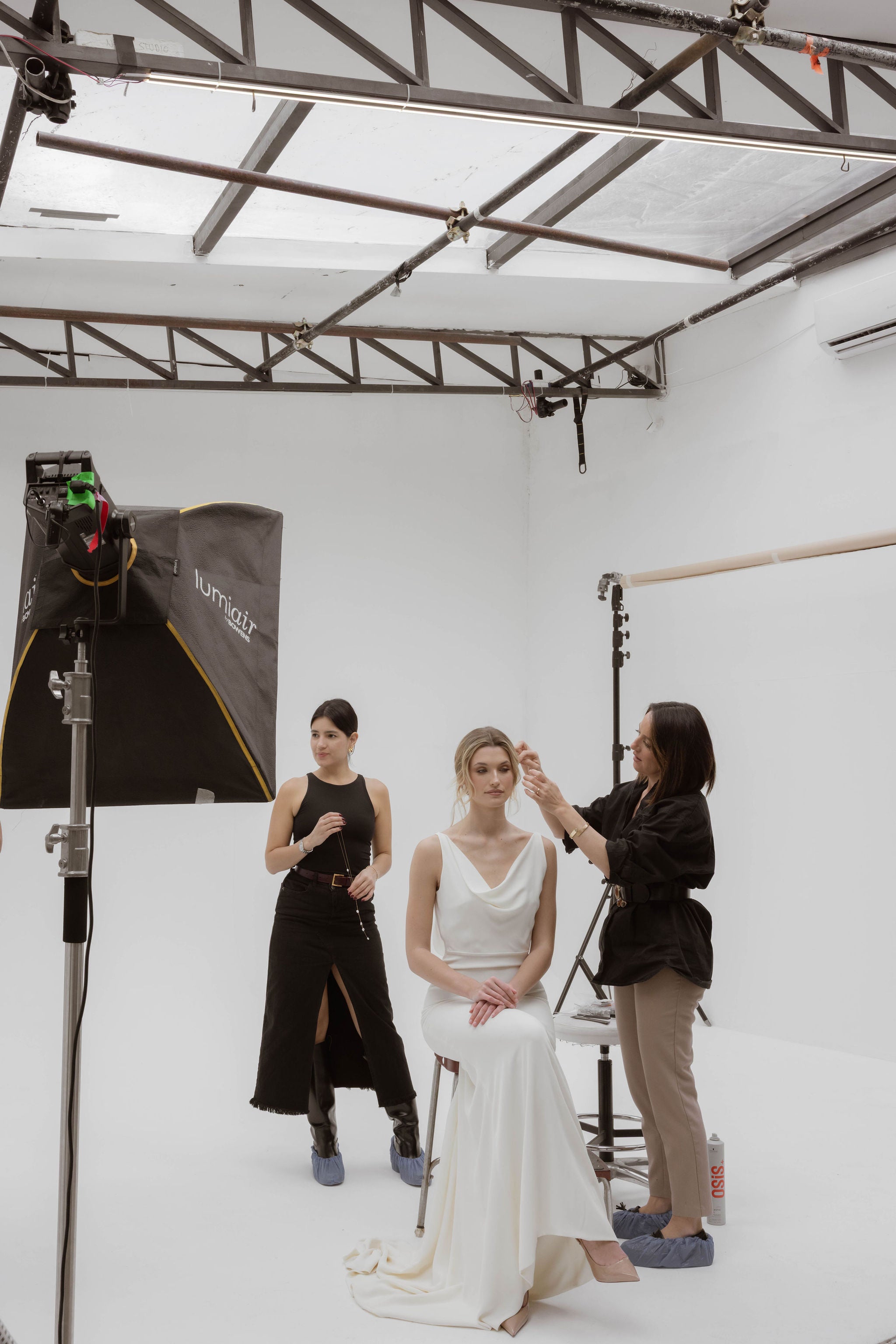 En parallèle, pour capturer cette essence dans un cadre plus contemporain, nous avons choisi un espace baigné de lumière, où la pureté des lignes et la douceur des ombres magnifiaient la délicatesse de nos pièces. Là, dans ce lieu épuré, chaque détail trouvait sa place.