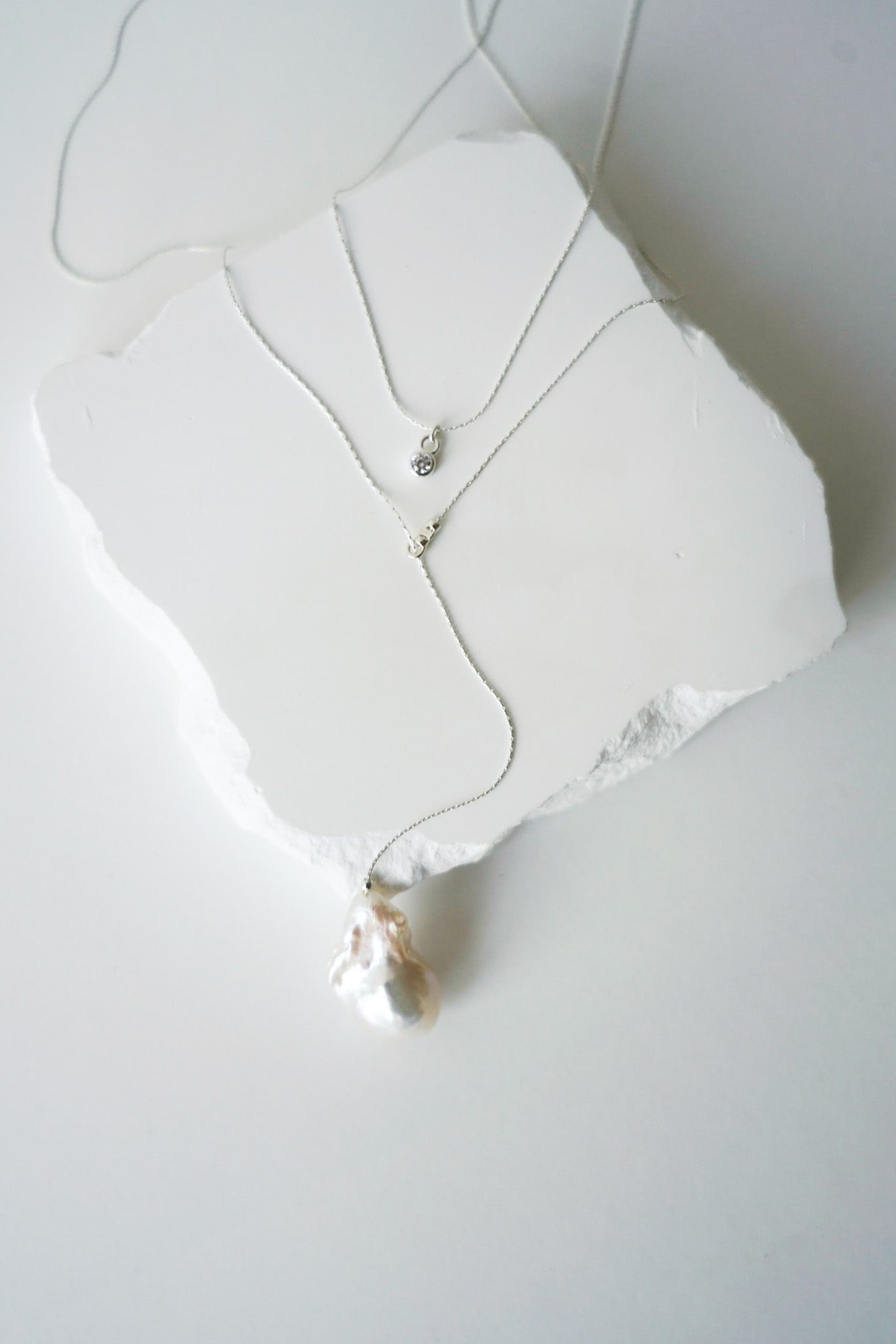 Fabriqué avec une magnifique chaîne en argent 925 de style vénitien, ce collier de dos impacte grâce à sa belle perle baroque en forme de poire qui pend dans le dos. Ce bijou délicat mais à la fois moderne et minimaliste comporte un beau pendentif en argent 925 orné d'un zircon sur le devant. Le résultat est un bijou contemporain et intemporel.