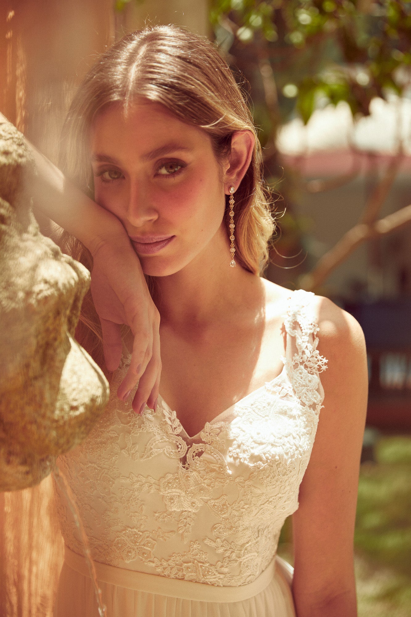Une version plus courtes de ces boucles d’oreilles est disponible sur notre site. Visitez nos boucles d’oreilles mariage Vitoria courtes.