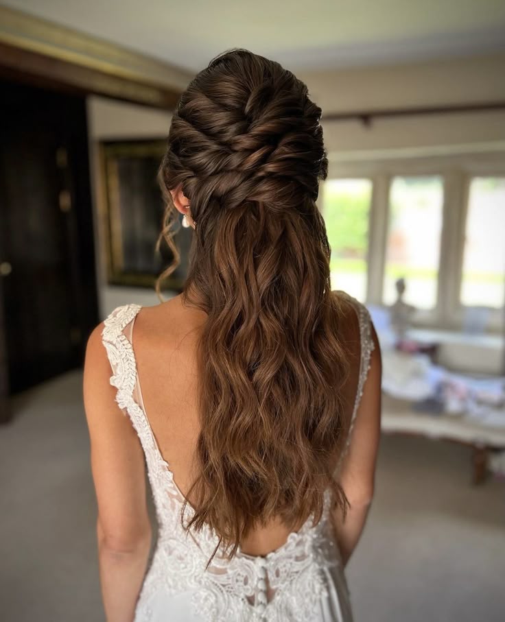 Enfin, le style wavy est particulièrement adapté aux mariées qui souhaitent garder une certaine fluidité et naturel tout en restant élégantes. Il se marie merveilleusement bien avec des robes légères, des couronnes de fleurs ou des voiles courts pour un effet subtil et poétique. C’est une option polyvalente qui garantit une allure chic et intemporelle.