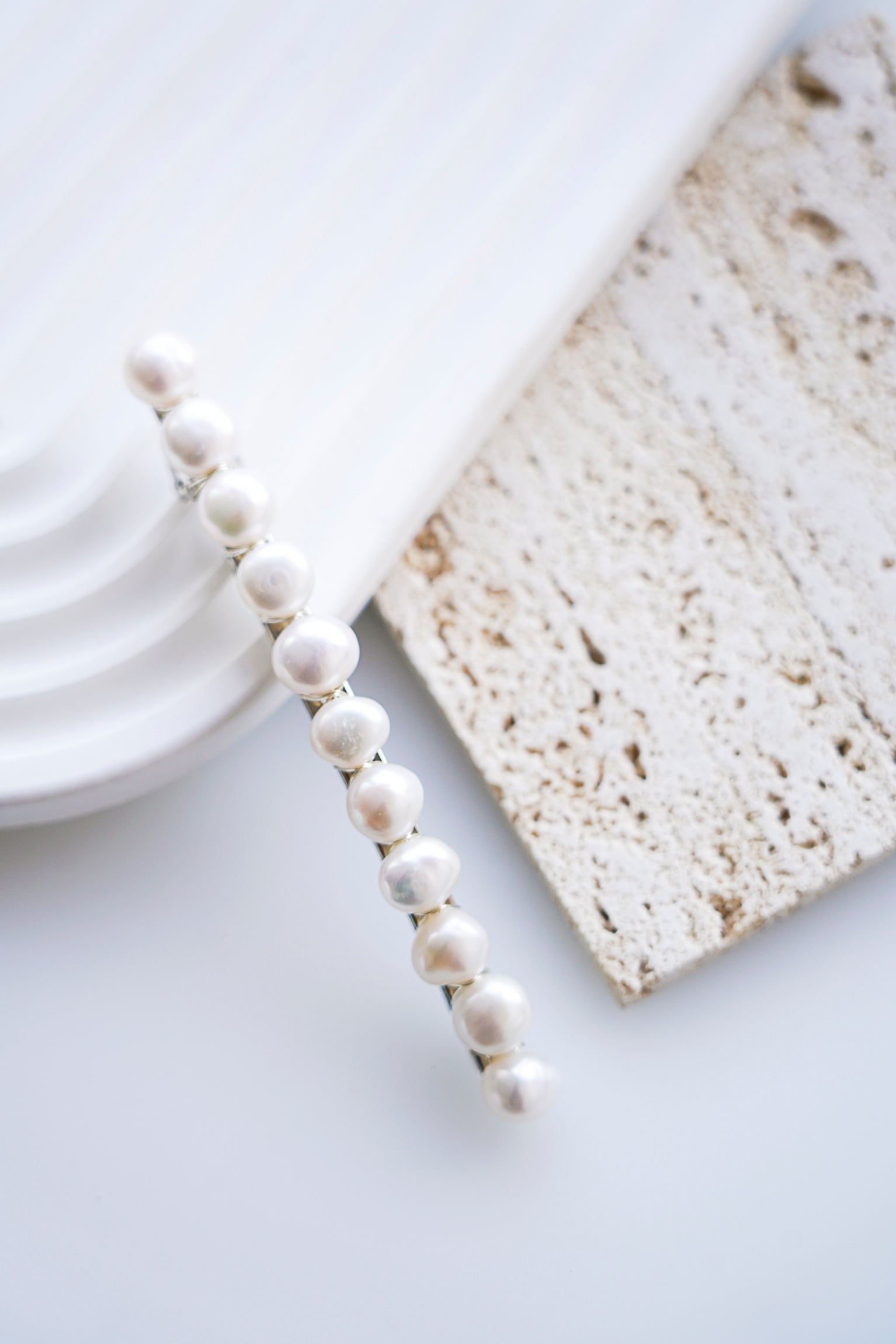 Découvrez notre barrette de perles d'eau douce, un accessoire de coiffure moderne, élégant et très raffiné qui sublimera toutes vos coiffures au quotidien.