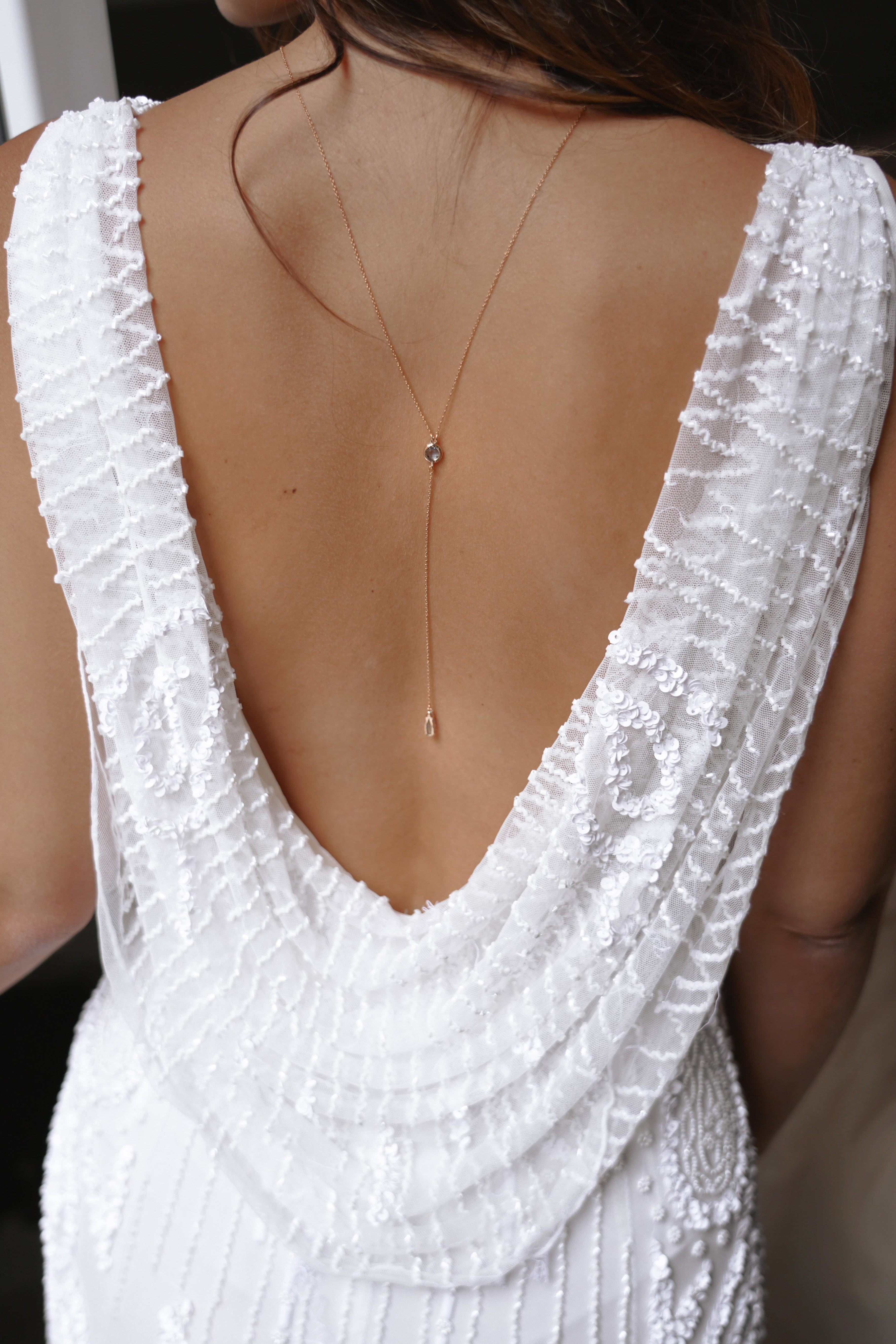 Cet accessoire sublimera le décolleté de la robe de la mariée en rajoutant une touche unique, sophistiquée et élégante.