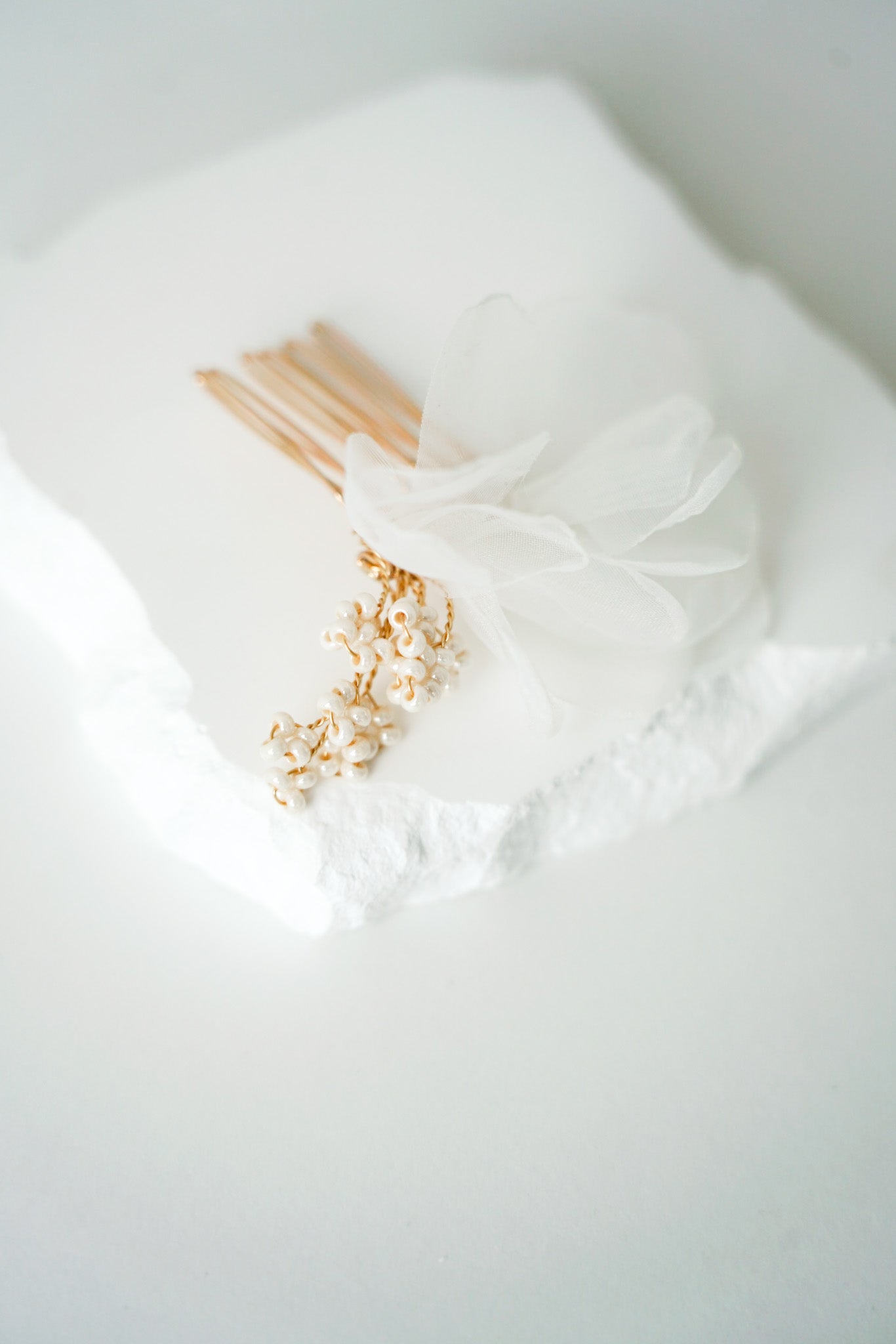 Colombe - Peigne floral pour chignon en organza