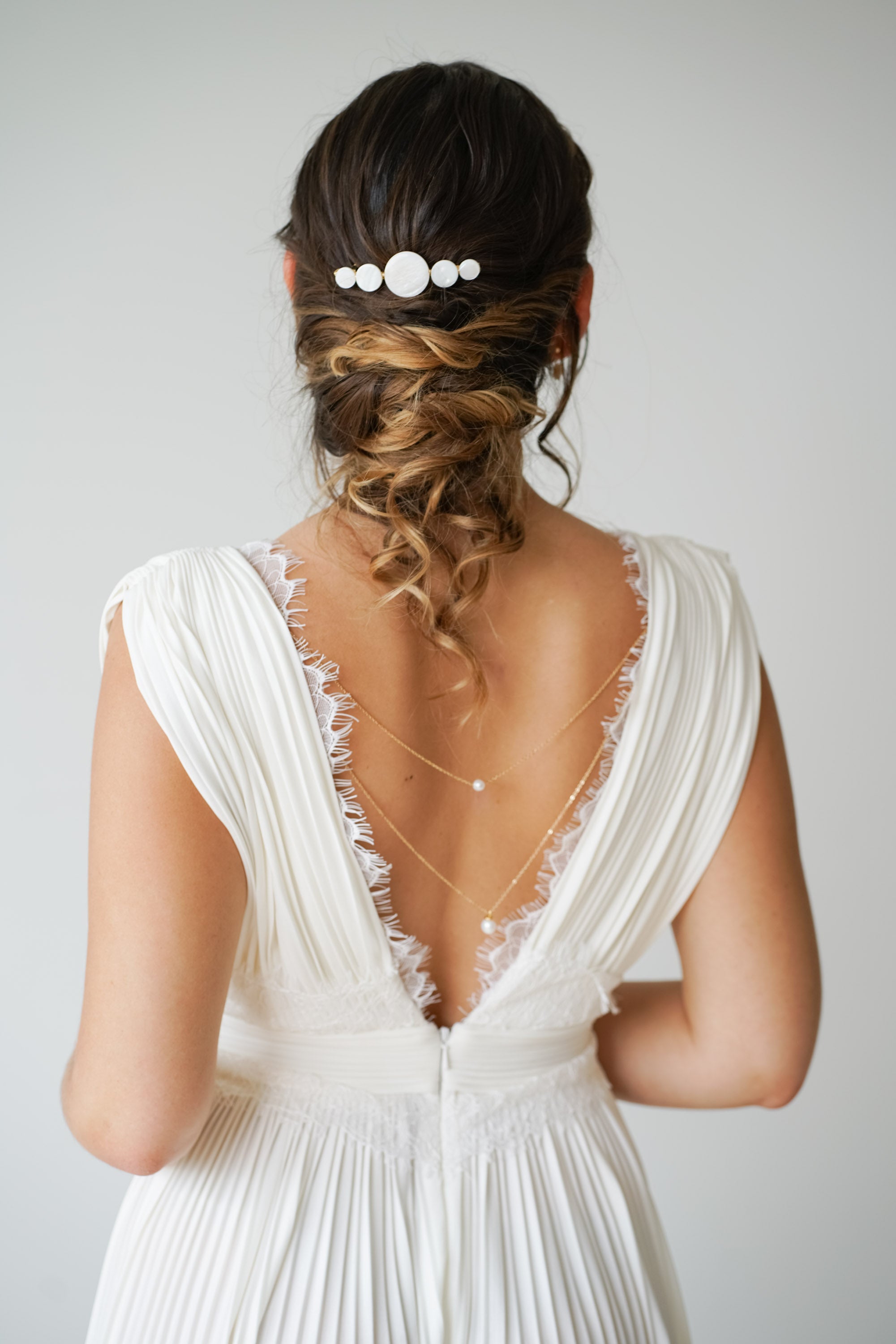 Ce magnifique accessoire en nacre pour les cheveux complétera toutes vos tenues, que ce soit pour celles de tous les jours, ou celle d'une occasion spéciale comme un mariage.
