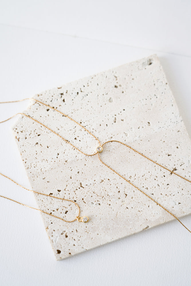 Sur le devant, ce collier est agrémenté d'un zircon rond identique à celui sur le dos.