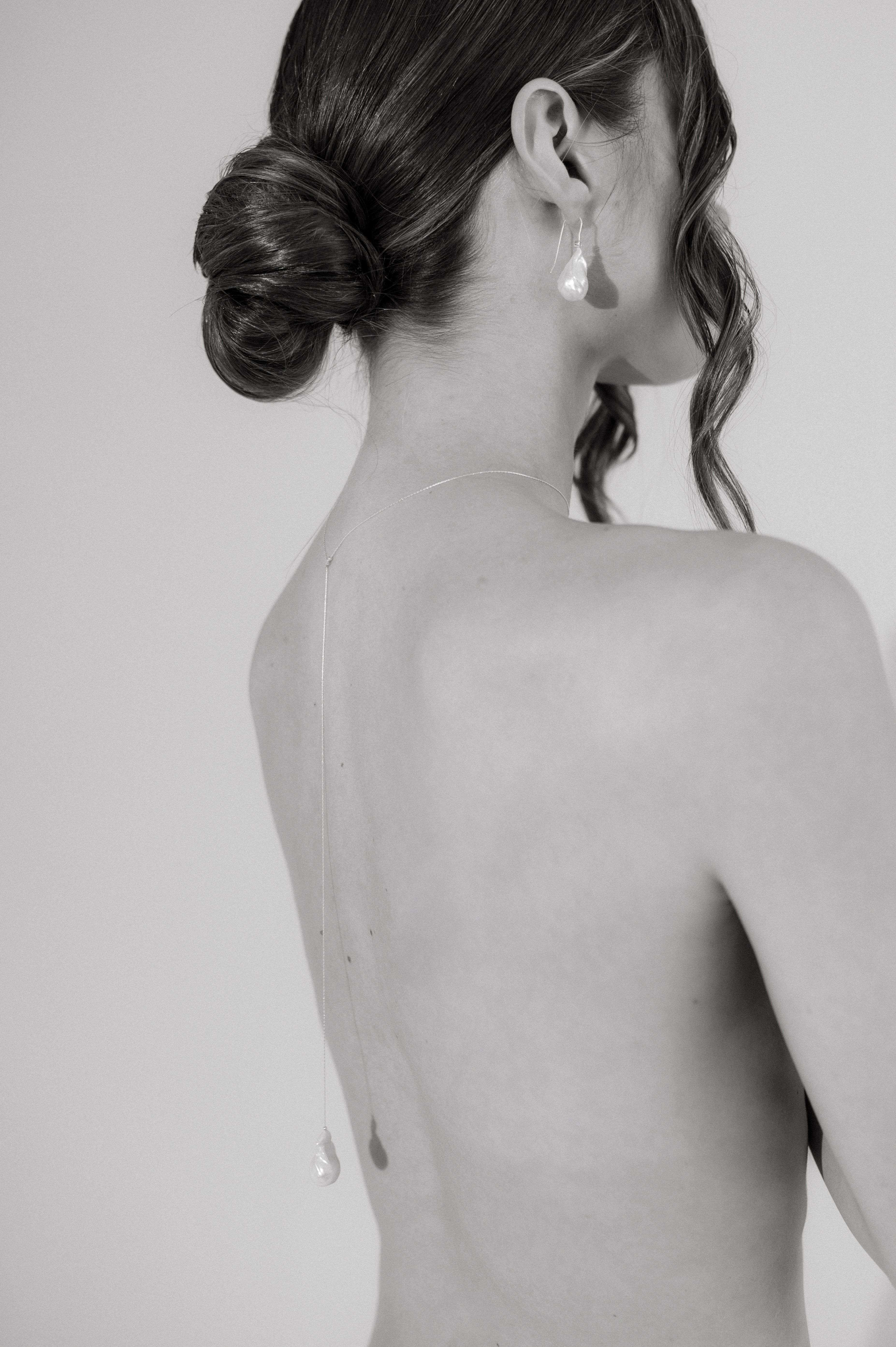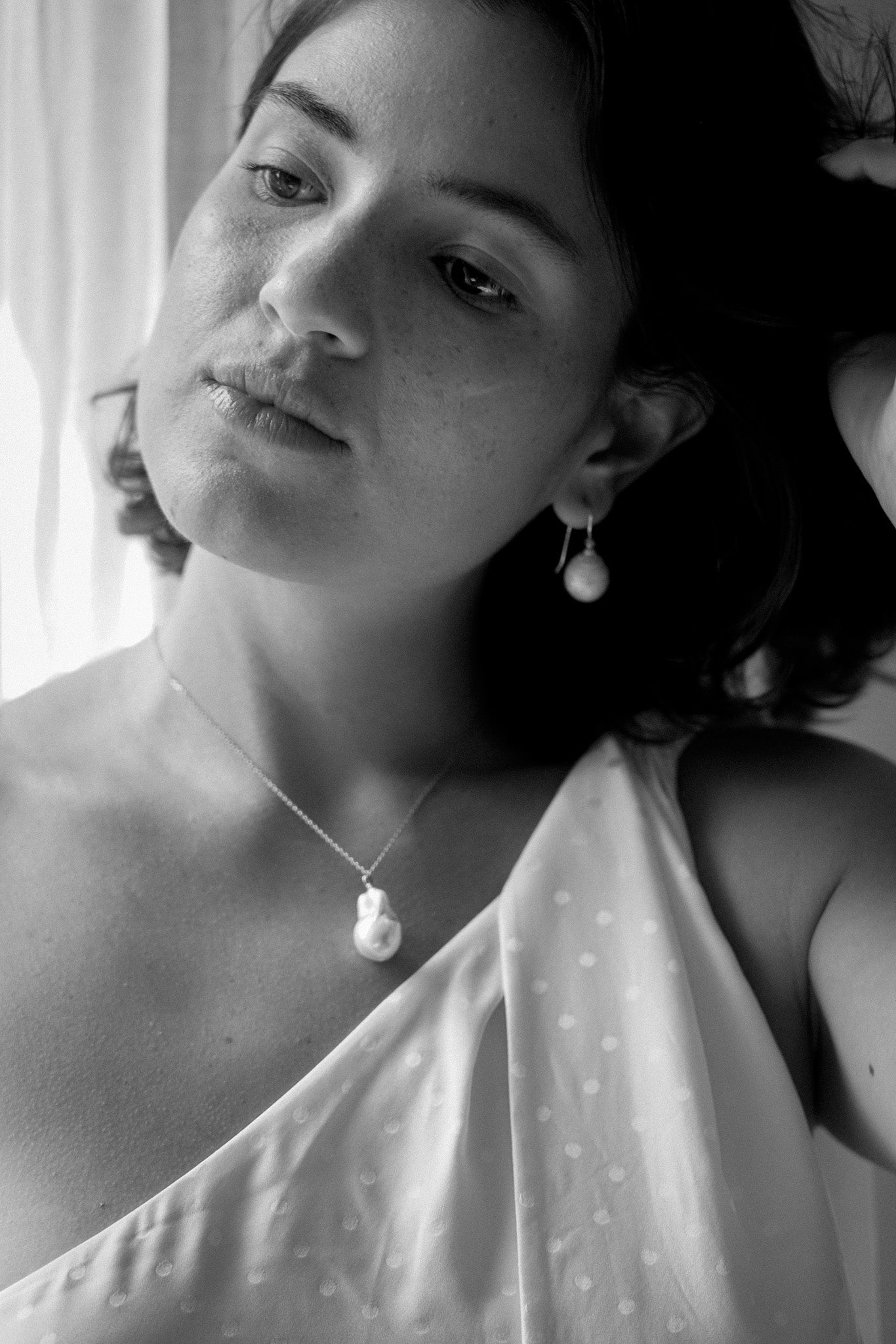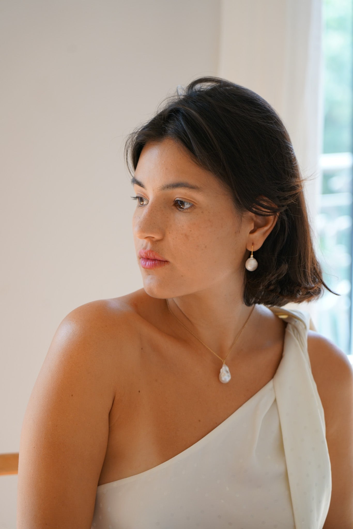 Bari - Brinco de pressão em prata de lei com pérola barroca
