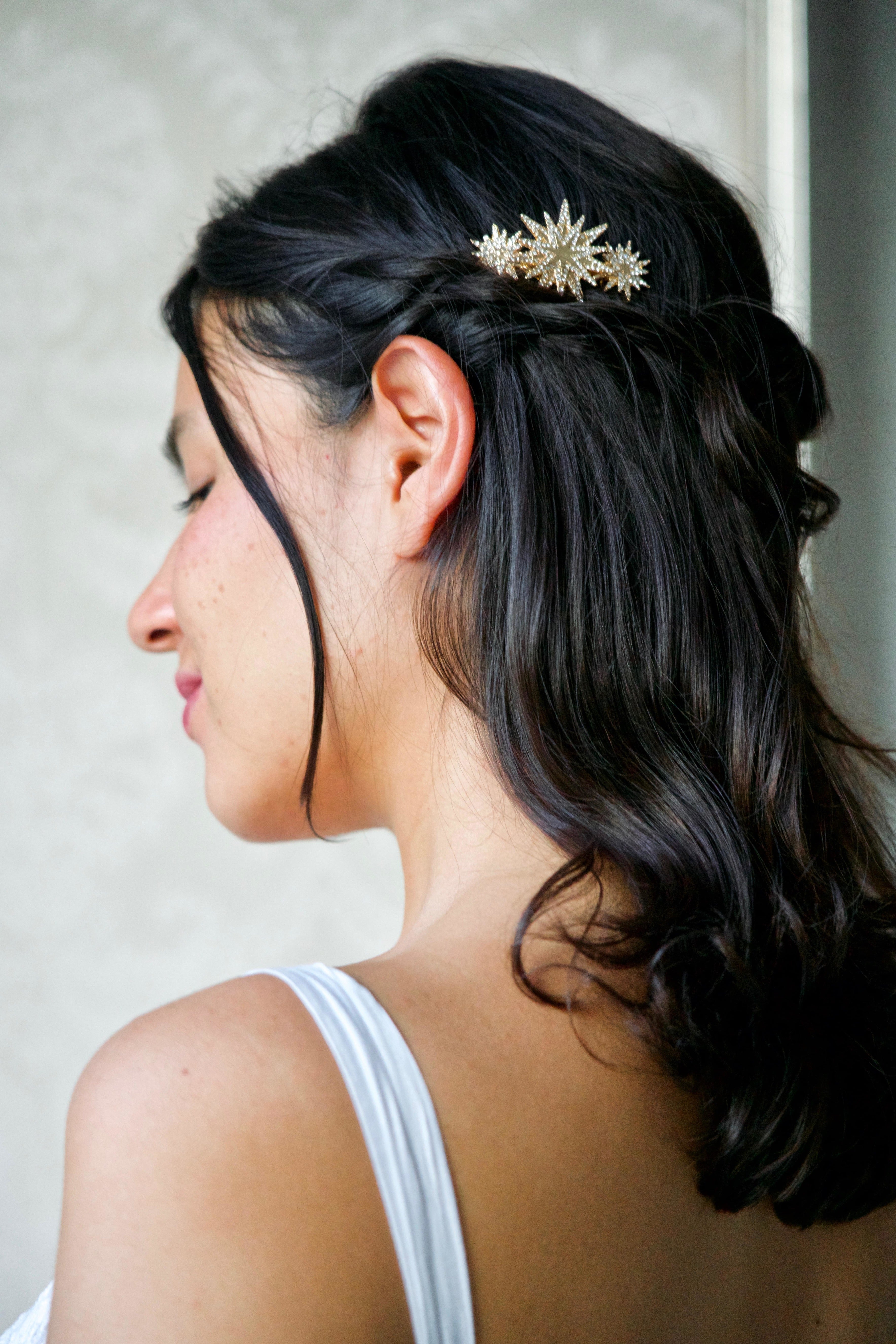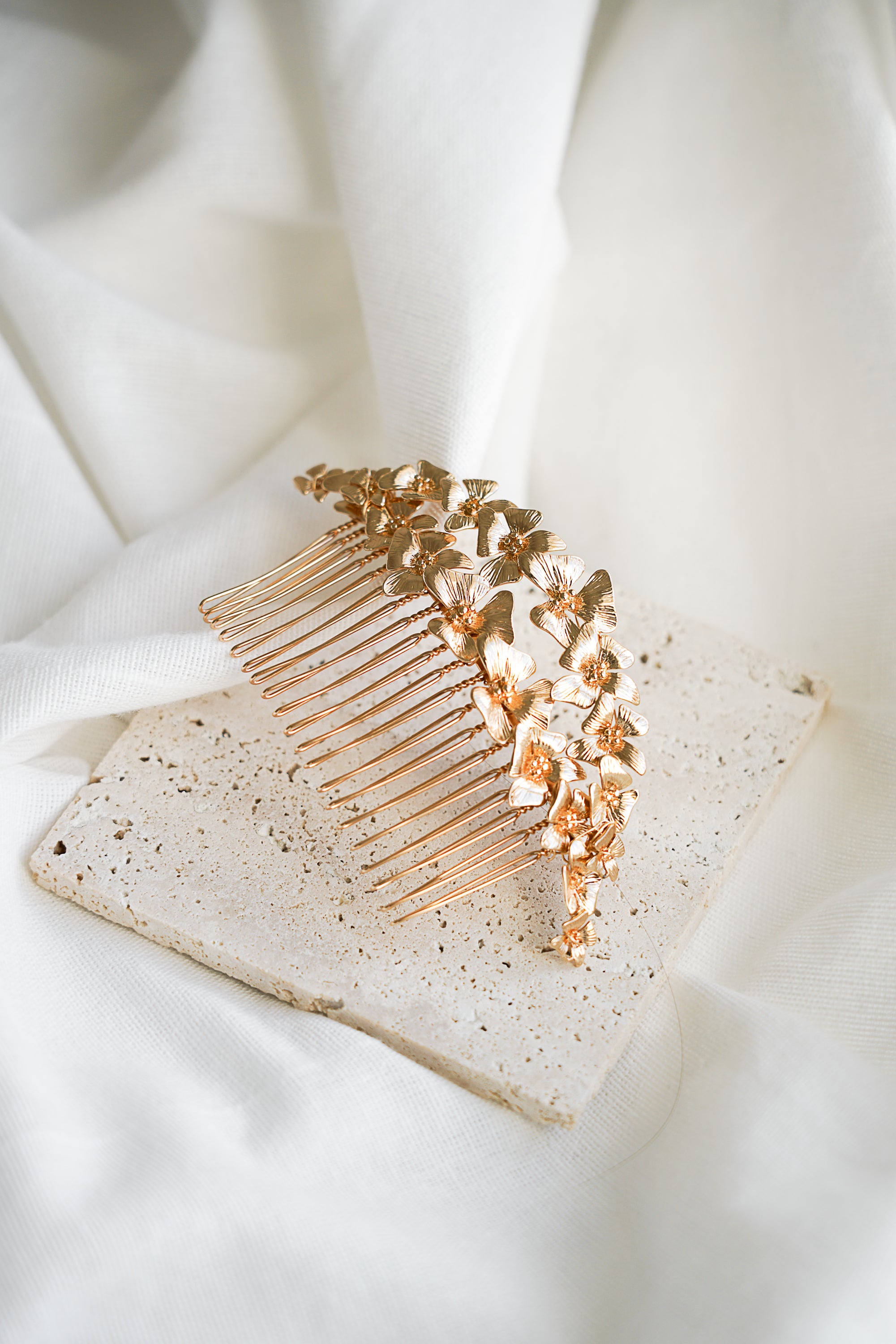 Amore - Presilha de cabelo floral delicada, romântica e boêmia