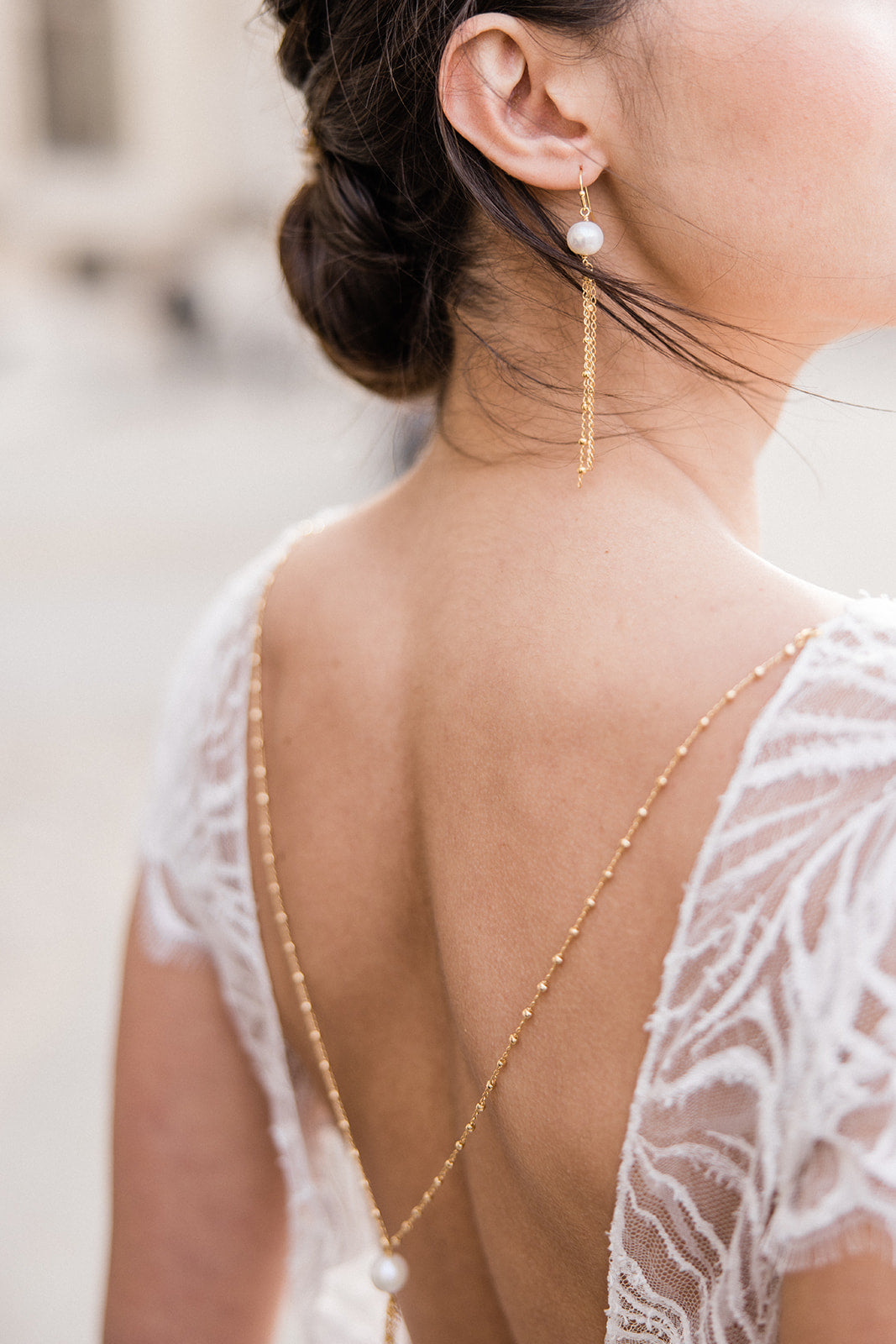 Esta pulseira é feita com uma fina e delicada corrente dupla, de bolinhas, banhada em ouro 24k. Esta joia única oferece um toque sutil e elegante para a noiva.