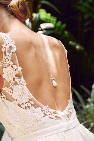 Pura - Sublime colar floral nas costas com uma linda gota de madrepérola